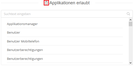 Unter diesem Reiter sehen Sie, welche Applikationen vom ausgewählten Benutzer verwendet werden können.
