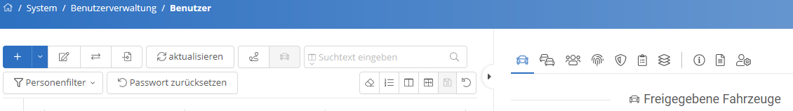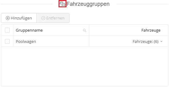 Um dem Benutzer eine Fahrzeuggruppe zu entziehen, wählen Sie die entsprechende Gruppe aus und klicken auf den - Button.