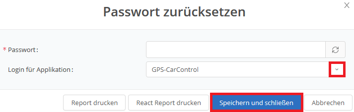 Über den Pfeil können Sie auswählen, für welche Anwendung das Passwort zurückgesetzt werden soll.