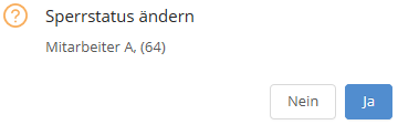 Um den Sperrstatus eines Benutzers zu ändern, wählen Sie den entsprechenden Benutzer aus und klicken auf den - Button. Anschließend öffnet sich eine Abfrage, ob der Sperrstatus geändert werden soll.