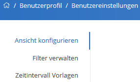 gelangen Sie zu den Benutzereinstellungen. Hier können Sie die Ansicht konfigurieren, Filter verwalten und Zeitintervall Vorlagen anpassen.