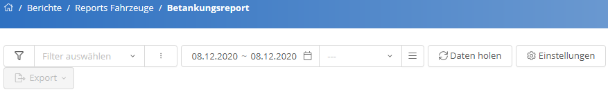 Sie haben außerdem die Möglichkeit, den Betankungsreport als PDF und als CSV Datei zu exportieren. Dafür klicken Sie einfach auf den - Button und wählen Ihren präferierten Export.
