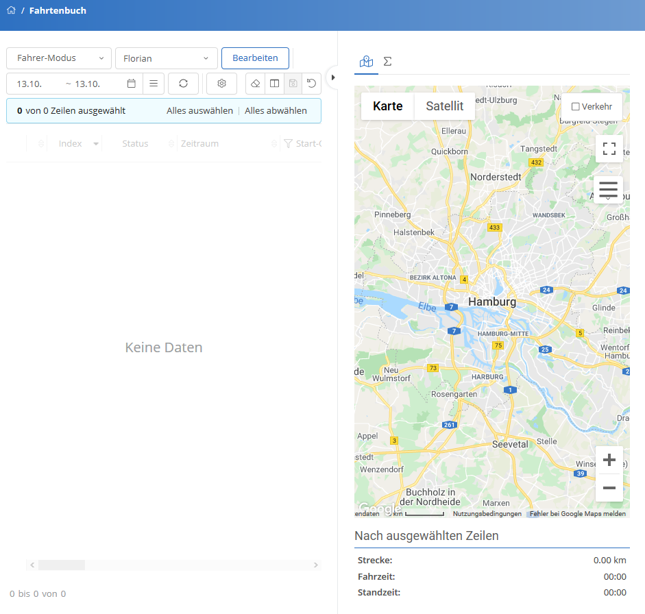 Im Fahrtenbuch haben Sie die Möglichkeit, Perioden und Fahrten zu bearbeiten und verschiedene Ansichten zu speichern.