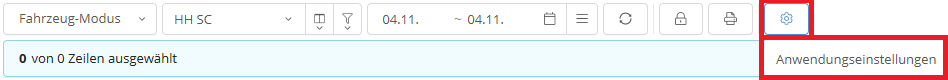 Wenn Sie diese Ansicht als Startansicht speichern möchten, klicken Sie auf Einstellungen und anschließend im Dropdown-Menü auf Anwendungseinstellungen.
