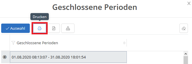 Um das Fahrtenbuch für das Finanzamt auszudrucken, wählen Sie eine geschlossene Periode aus der Übersicht aus und klicken auf den - Button. CarControl erstellt nun eine vom Finanzamt akzeptierte PDF-Datei.