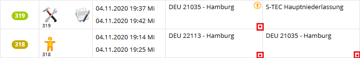 Der rote Punkt in einem Adressfeld weist darauf hin, dass die Adresse noch nicht mit einer Geozone verknüpft ist.