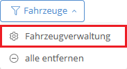 Um ein Fahrzeug auszuwählen klicken Sie auf den - Button und wählen anschließend Fahrzeugverwaltung aus.