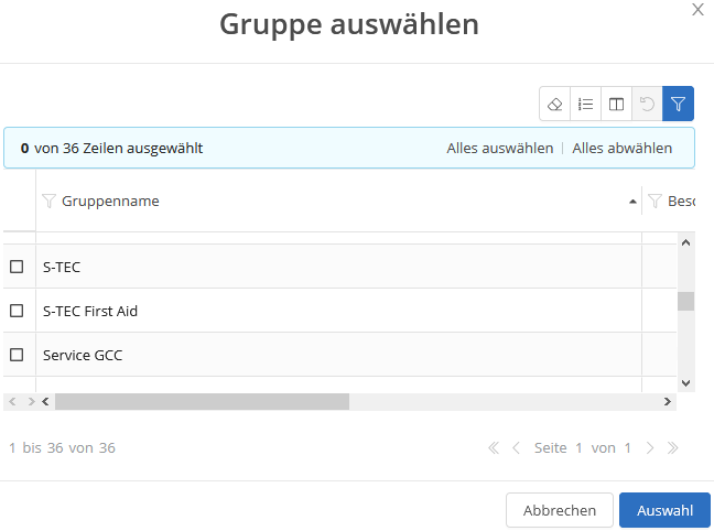 Anschließend können Sie eine Personengruppe aus der Liste auswählen und die Auswahl mit dem - Button bestätigen.