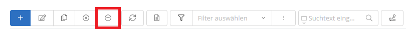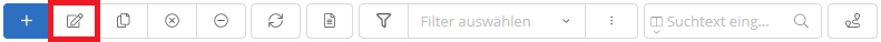 Wenn Sie ein Fahrzeug bearbeiten möchten, klicken Sie auf die entsprechende Zeile in der Tabelle, um das Fahrzeug auszuwählen, und anschließend auf den -Button in der Hauptfunktionsleiste.