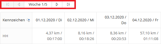 Die Ergebnisse werden stets Wochenweise angezeigt. Durch Klicks auf die Pfeile können die Wochen gewechselt werden.