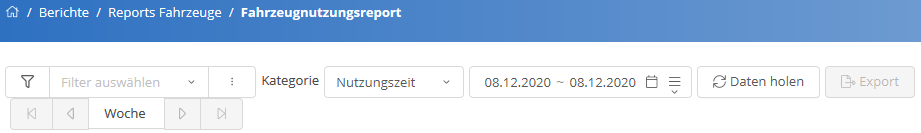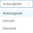 Nachdem Sie Ihren entsprechenden Filter ausgewählt haben, haben Sie die Möglichkeit, die Visualisierung aus drei verschiedenen Kategorien auszuwählen. Es steht Ihnen Nutzungszeit, Fahrzeit und Standzeit zur Verfügung.