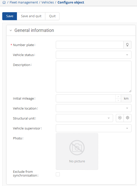 Vehicles that are equipped with a telematics unit are already entered in the table. However, you can add further offline vehicles to the administration at any time or create a new online vehicle if a device has been converted.