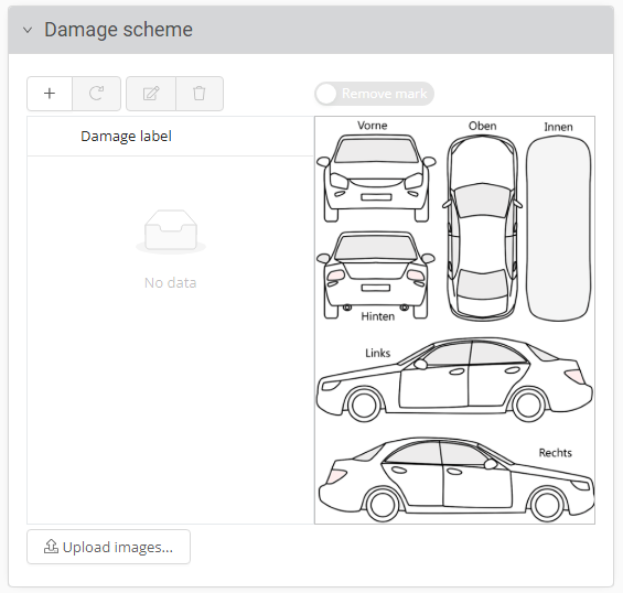 In the subsequent damage diagram, you can indicate which areas/parts of the vehicle are affected.