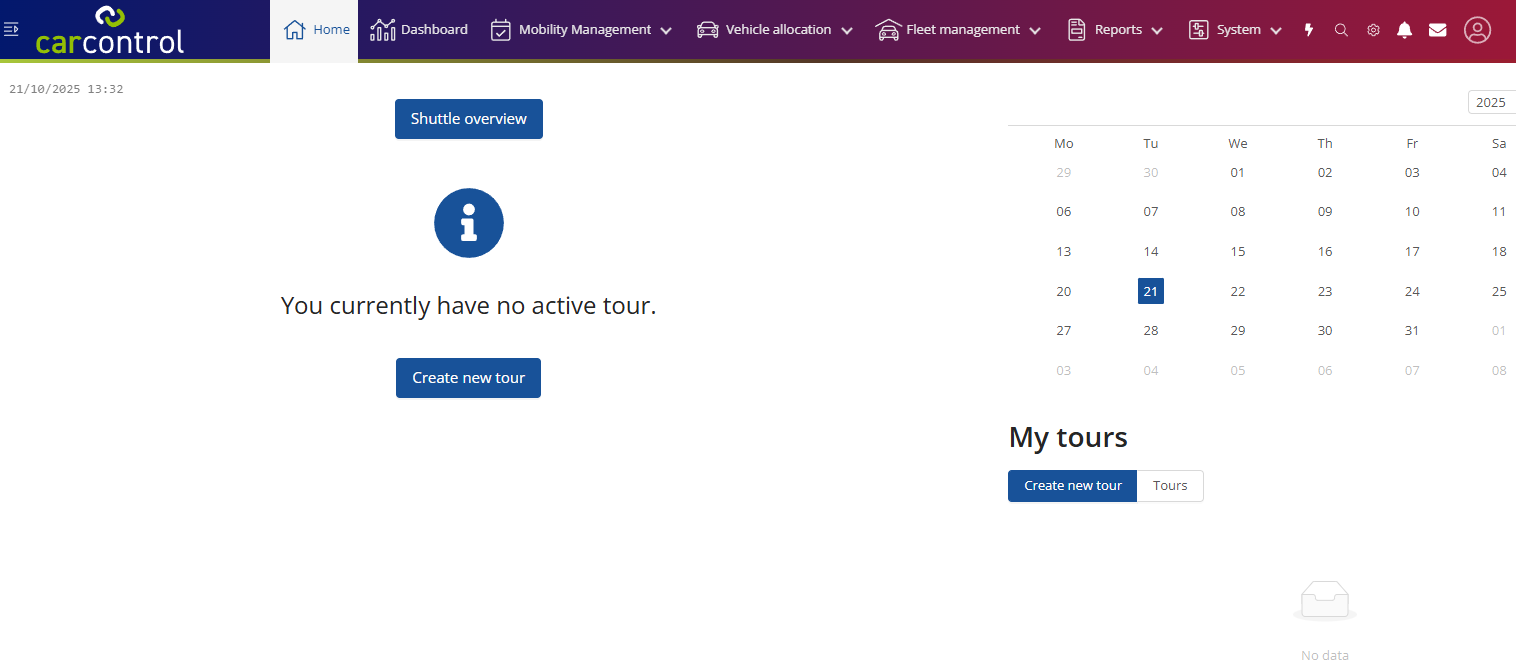 On the home page you can see directly whether you have a current journey or when journeys are planned in the current calendar month.