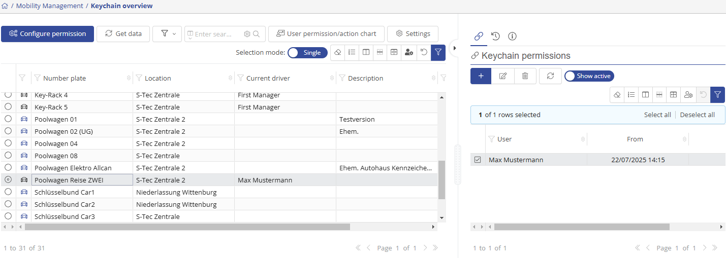 If you click on the desired vehicle, you can view the various authorized drivers and their authorization periods on the right-hand side.