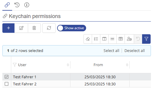 In the vehicle overview of the selected vehicle, you can see the different authorization times of the individual users.