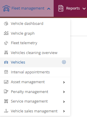 To create these corrections for one or more vehicles, click on “Fleet manager” in the menu bar at the top, which opens a drop-down menu, including the sub-item “Vehicles”, which you click on.
