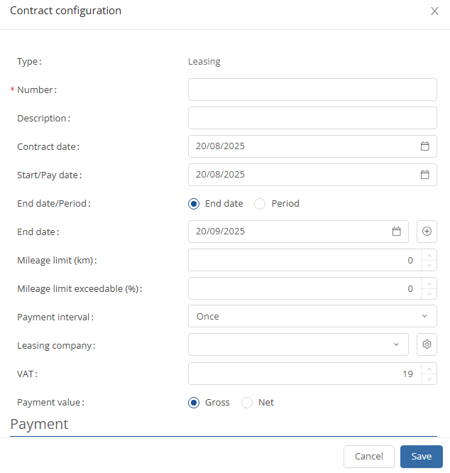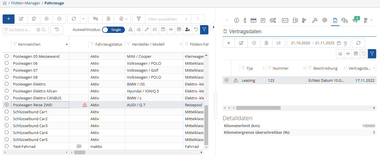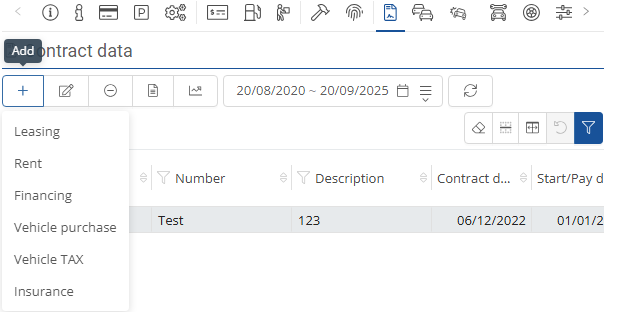 It is possible to store contract data for vehicles, such as leasing contracts.