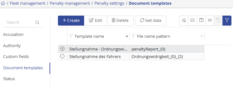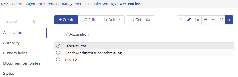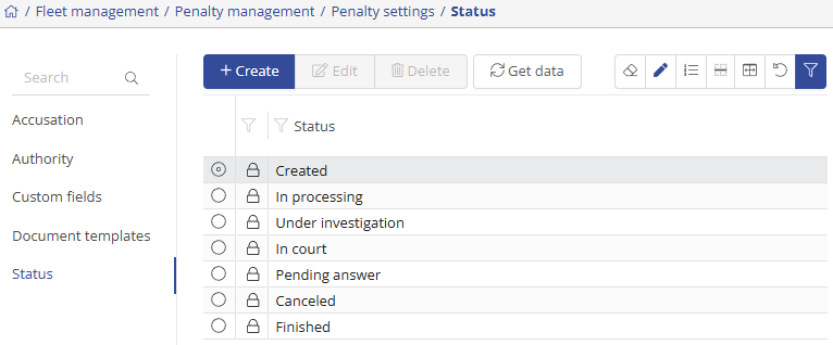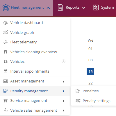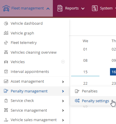 You can find the view and settings for penalties on the home page under Fleet Manager and the drop-down menu below it.