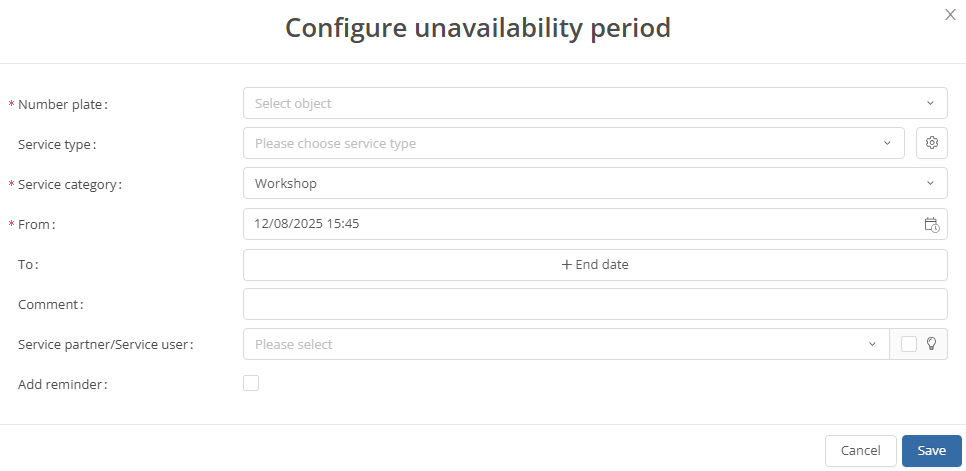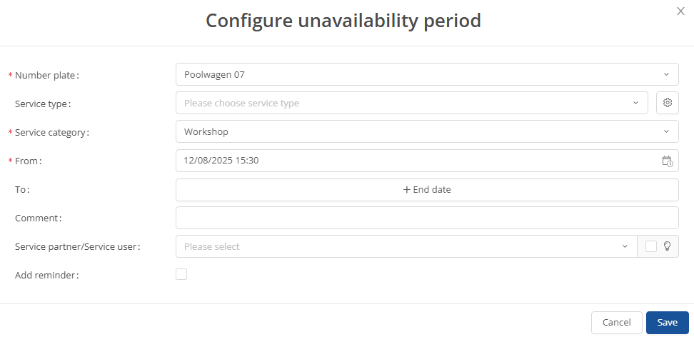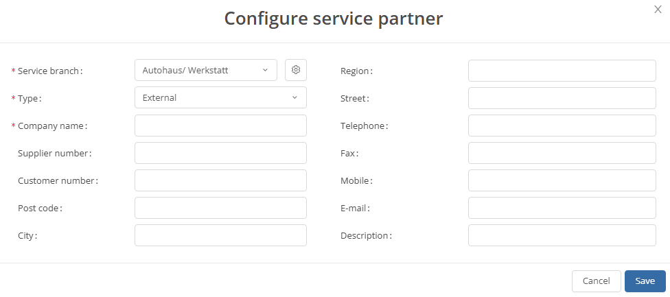 Here you have the opportunity to enter all the necessary information about the service partner.