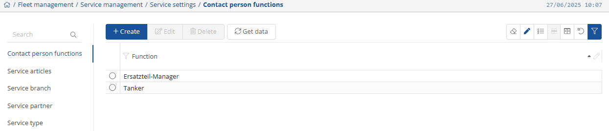It is possible to store “Contact person functions” such as spare parts manager. You can do this via the