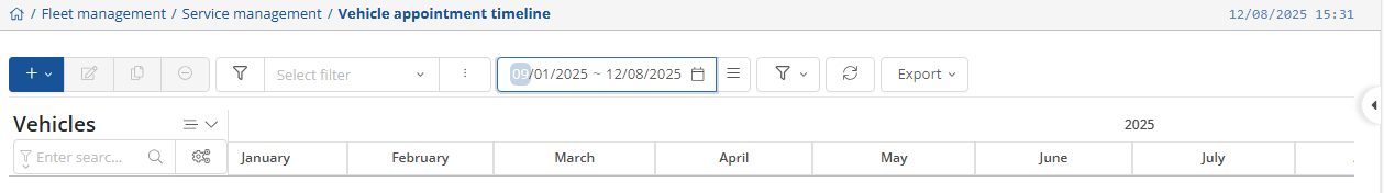 The view and settings for the service timeline can be found on the home page under Fleet Manager and the drop-down menu below it.