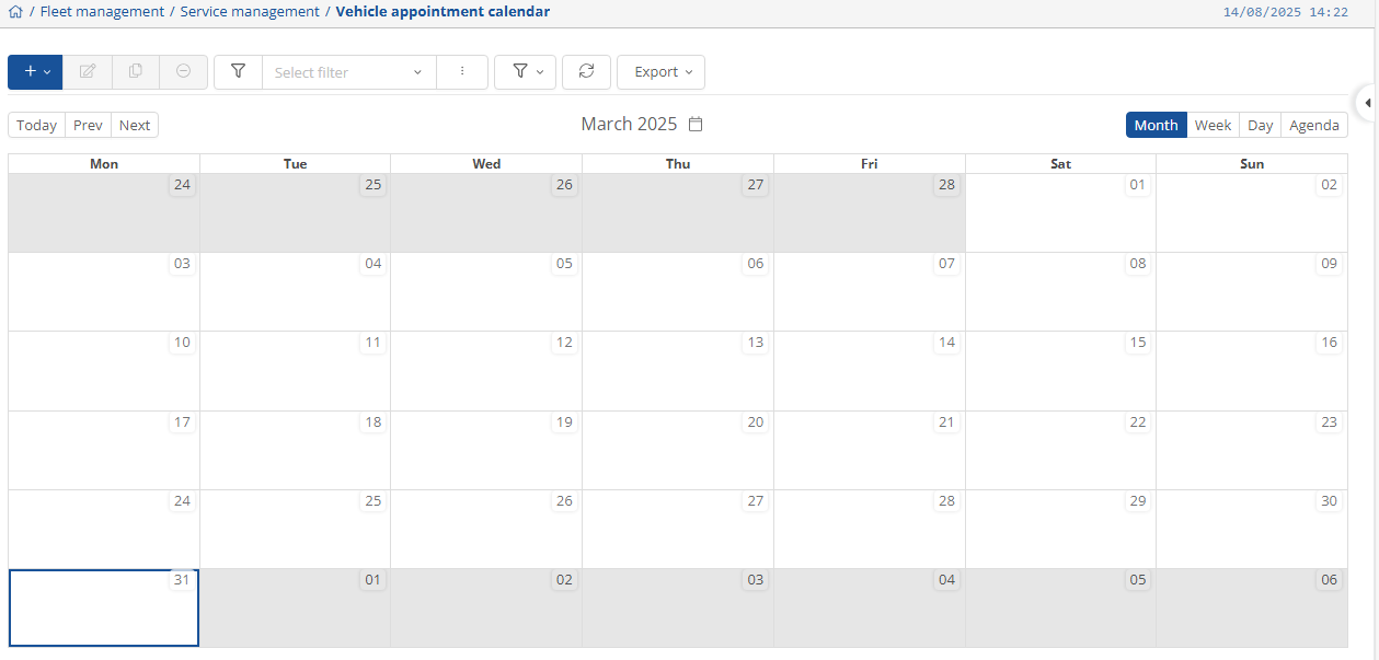 You can find the view and settings for vehicle appointments on the home page under Fleet Manager and the drop-down menu below it.
