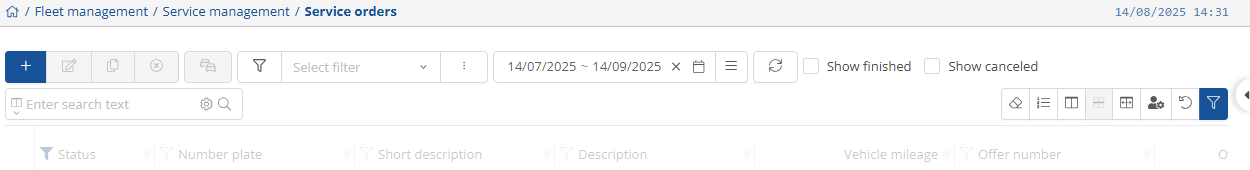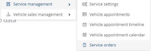 You can find the view and settings for service orders on the home page under Fleet Manager and the drop-down menu below it.