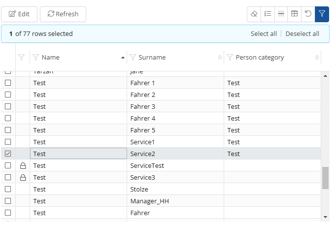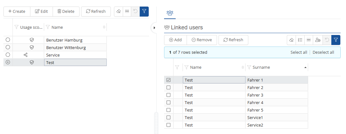 Here you can see which users are in which user category and edit them.