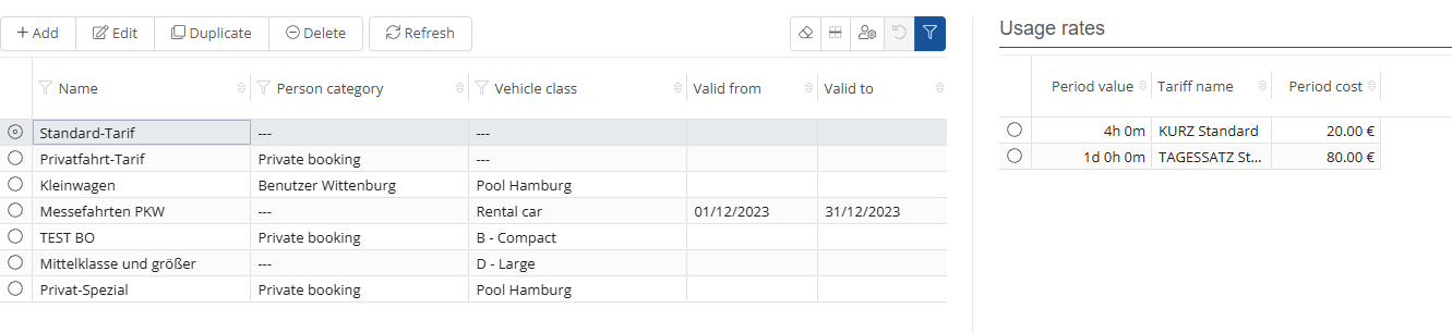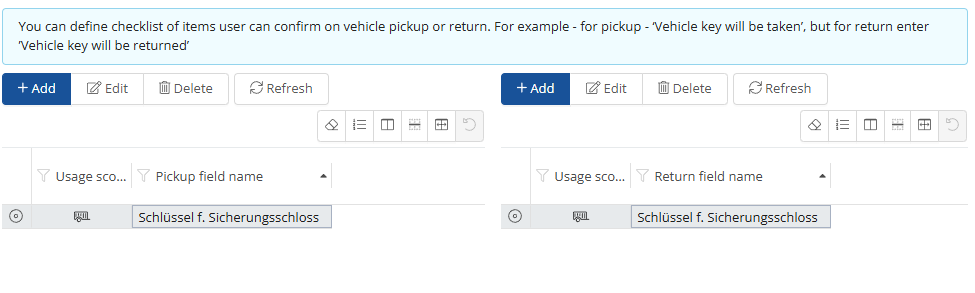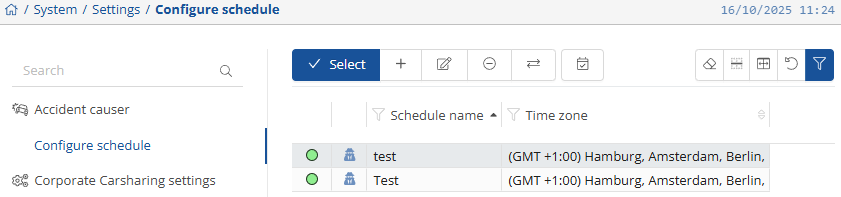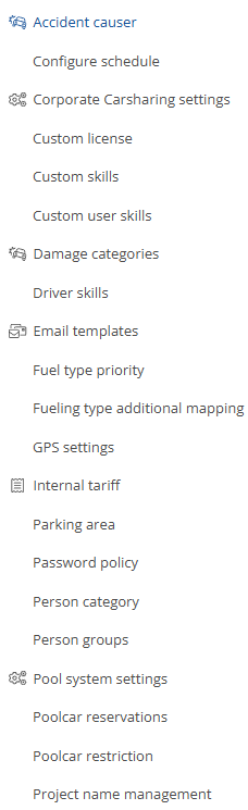 Corporate Carsharing settings: