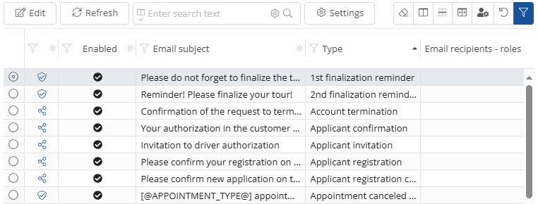 In the e-mail templates, you have the option of presetting all automatic e-mails, specifying the recipients and activating or deactivating selected e-mails.