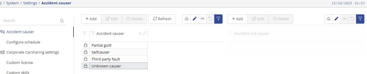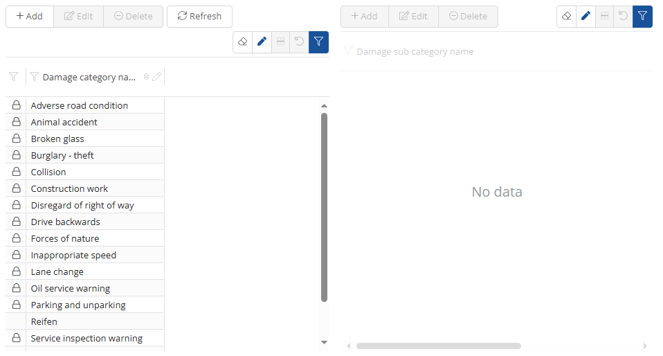 You can pre-configure accident causes under the accident cause settings. You can also add a damage subcategory. You can add something by clicking on