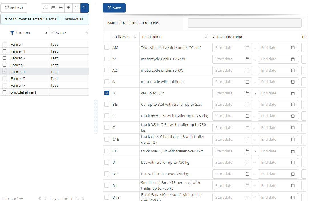 -button. In the window that now opens, you can select the driver skills that you want to add or remove from a user.