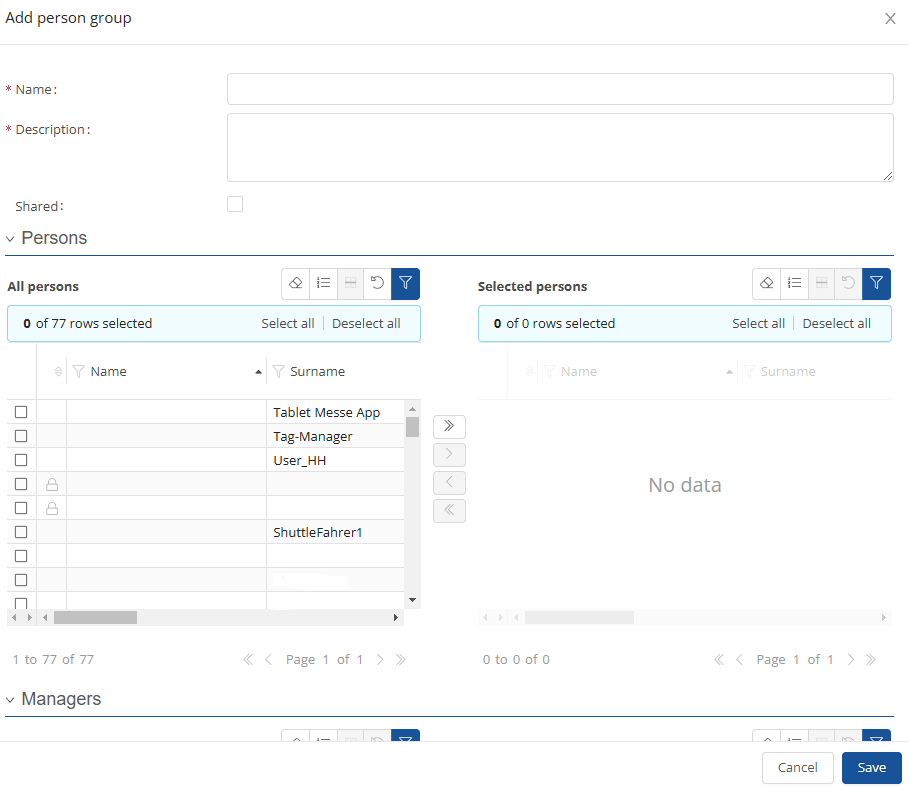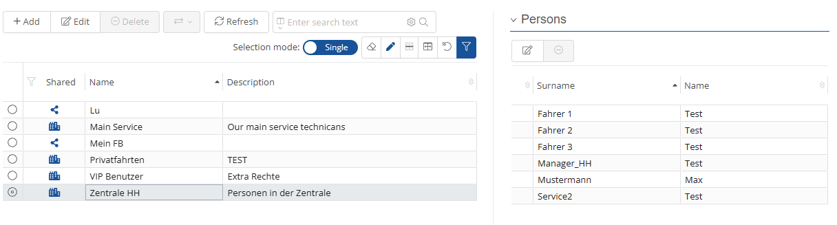 In the “Person groups” area, you can create groups that summarize users, such as employees who work at a common location.