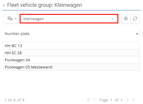 Only the vehicles in the selected vehicle group are now displayed in the table.