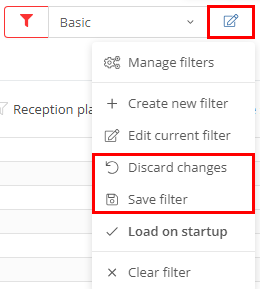 If you want to save the changes you have made to the filter, click on the pencil icon to the right of the selection field and then on "Save filter".