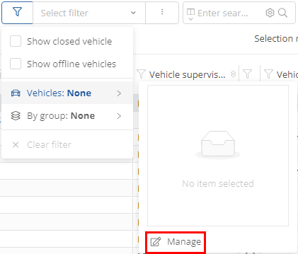 To display only certain vehicles, click on Vehicles: None and then on manage.