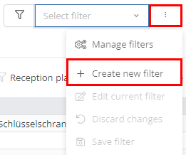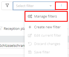 Click on the tick or (if no user-defined filter is active) the three dots to open further filter options. Here you can manage, add and edit filters.