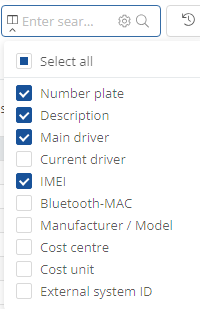 You can use the search field in the main function bar to search for vehicles whose cells contain a specific text.