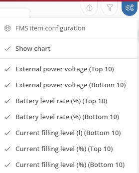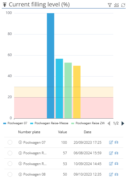 -button to apply filters according to which vehicles are selected for display in the dashboard. You can choose between preconfigured and self-created filters, but you also have the option of selecting individual vehicles. If a filter has been activated, the FIlter icon is displayed in red