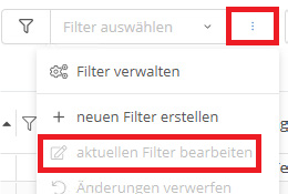 Wenn ein Filter aktiv ist, können Sie diesen über die Filteroptionen unter aktuellen Filter bearbeiten bearbeiten.