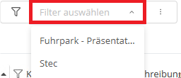 Im Auswahlfeld können Sie einen zuvor angelegten Filter aus dem Dropdown-Menü auswählen. Klicken Sie hierzu auf das Feld und anschließend auf den Filternamen.