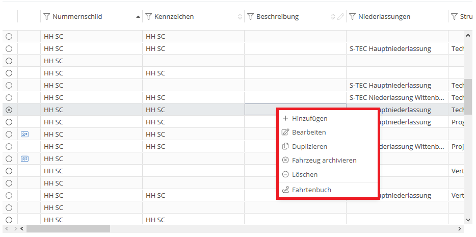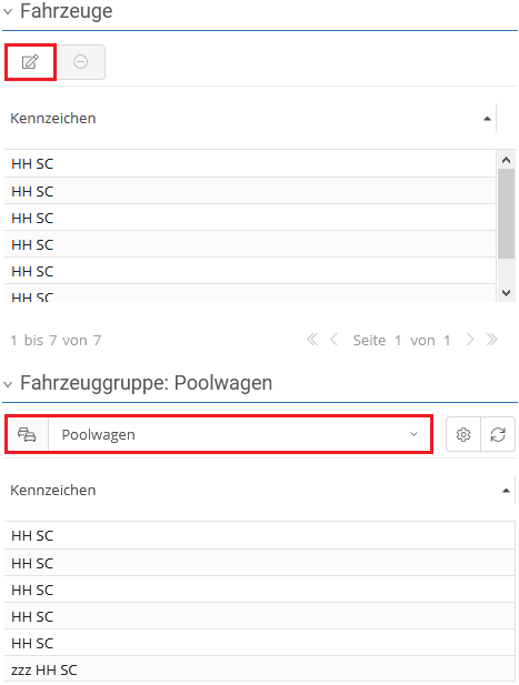 In der Tabelle werden Ihnen nun nur die Fahrzeuge der gewählten Fahrzeuggruppe angezeigt.