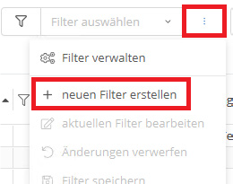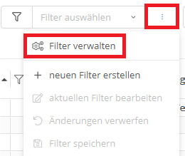 Klicken Sie auf den Haken oder (wenn kein benutzerdefinierter Filter aktiv ist) die drei Punkte, um weitere Filteroptionen zu öffnen. Hier können Sie Filter verwalten, hinzufügen und bearbeiten.