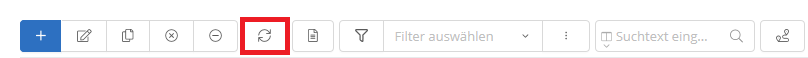 Wenn Sie Änderungen vorgenommen oder einen Filter ausgewählt haben, muss anschließend über den - Button, die Liste der Objekte aktualisiert werden.