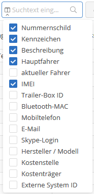 Über die Filterfunktion können Sie auswählen, welche Fahrzeuge angezeigt werden sollen. Dabei stehen Ihnen verschiedene Filtermethoden zur Auswahl.