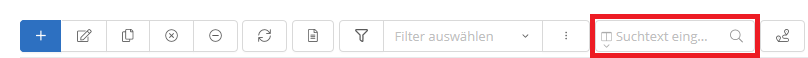 Klicken Sie auf das Dropdown-Menü der Suchfeldauswahl (), um auszuwählen, welche Spalten durchsucht werden sollen. Anschließend können Sie im Texteingabefeld Ihren Suchtext eingeben.
