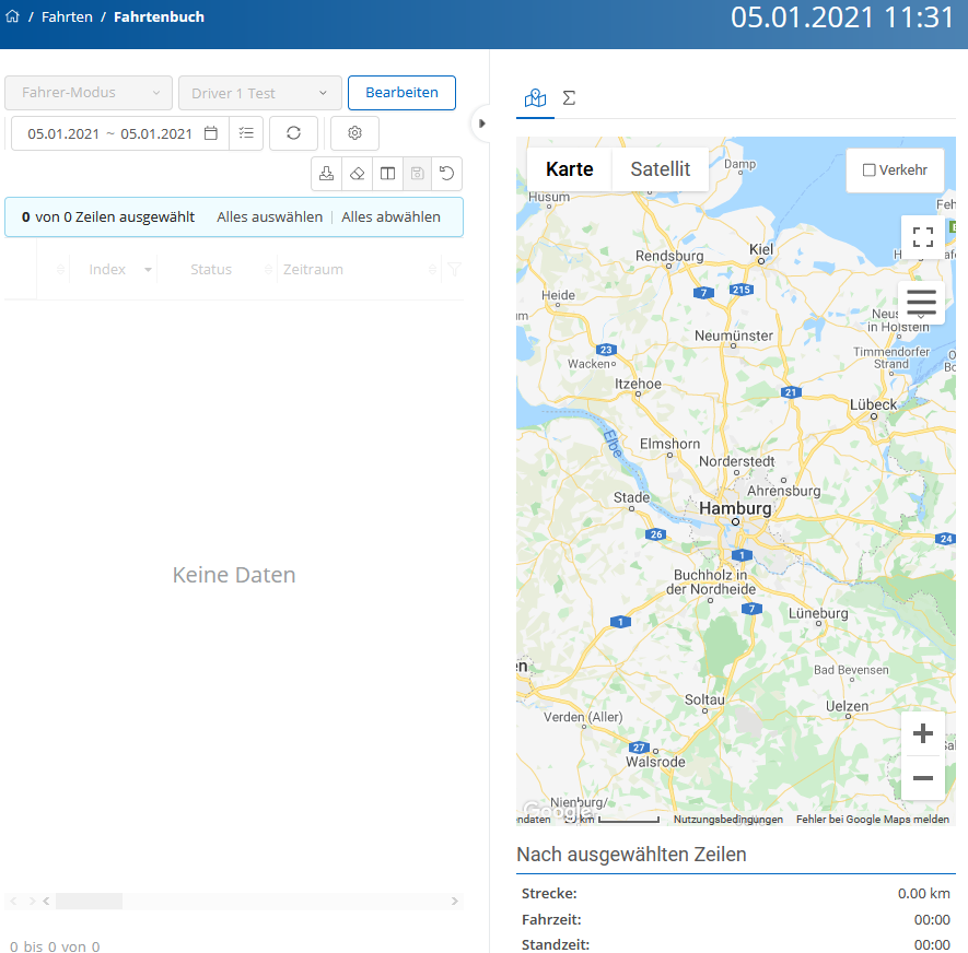 Im Fahrtenbuch haben Sie die Möglichkeit, Perioden und Fahrten zu bearbeiten und verschiedene Ansichten zu speichern.